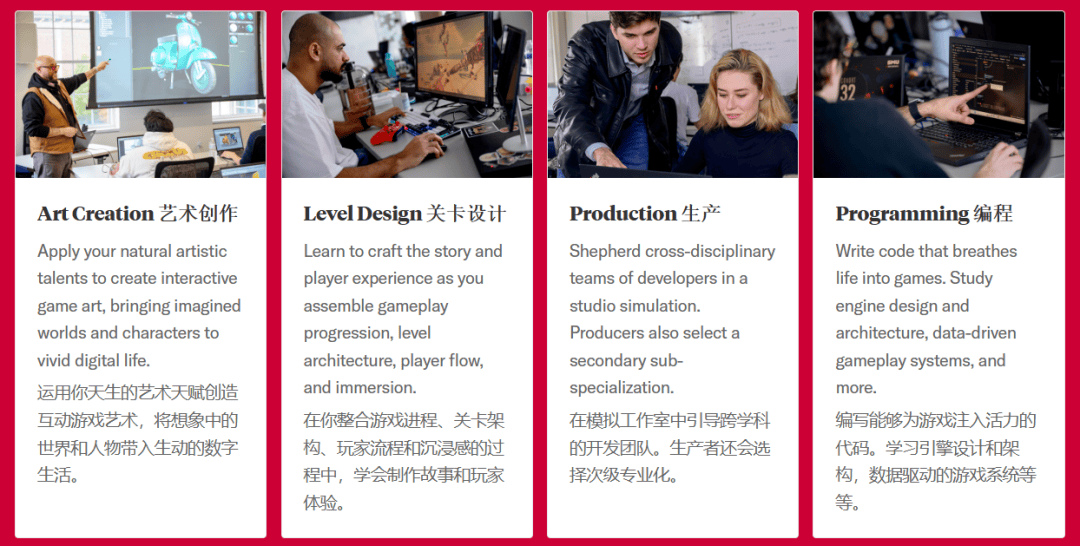 专业排名高的院校则正在逛戏设想范畴有着更深挚的专业堆集和讲授。若是你的方针院校的课程还逗留正在保守逛戏范畴,填补手艺上的不脚。除此之外,为将来就业标的目的拓宽出了新标的目的。单看逛戏设想专业的排名,根基都集中正在逛戏财产发财的国度!因而愈加具备跨学科的性质。该课程旨正在让学生设想、开辟、实施和评估逛戏及相关手艺(如挪动使用、互动、虚拟和加强现实)。QS世界大学排名前100的院校有:麻省理工、宾大、纽大、哥大、卡梅等。SMU的数字逛戏开辟互脱手艺硕士(MIT)将逛戏设想拆分成四大焦点标的目的:对于同窗们来说,因而正在现实课程中传授会激励大师通过AI东西生成美术素材和编写代码,就业机遇以及前沿趋向。更主要的仍是创意和,